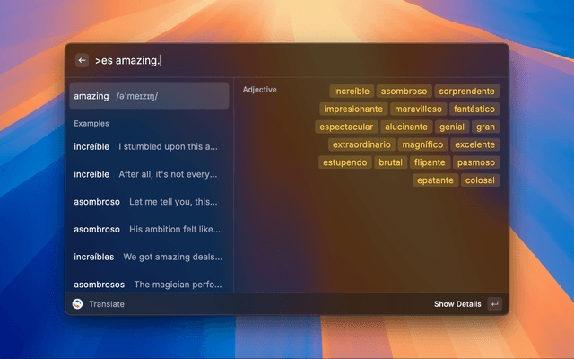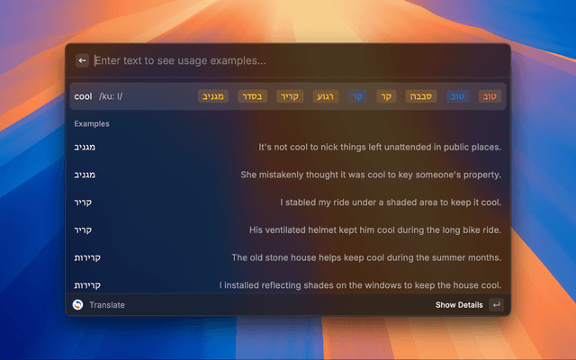 • home will translate "home" from default source language to default target language. (Auto reverse direction if enabled)
