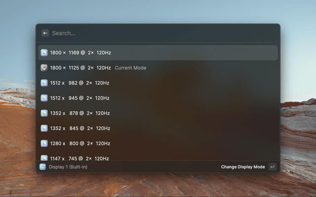 A simple extensions that lists the available displays, the modes for each display and allows to change to the mode with the desired resolution and refresh rate