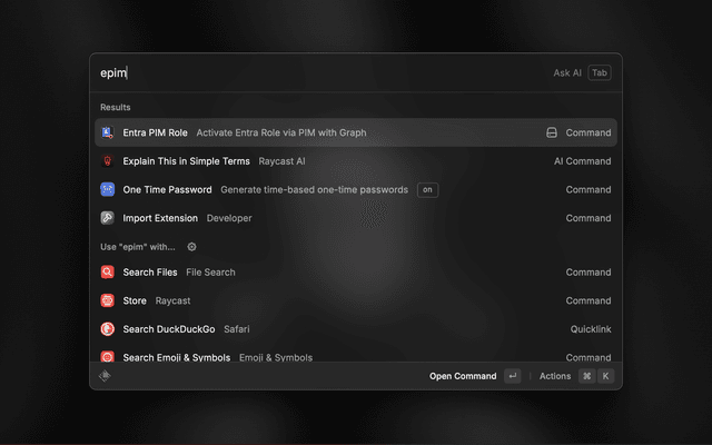 Activate Entra roles via PIM using Microsoft Graph API directly from Raycast.