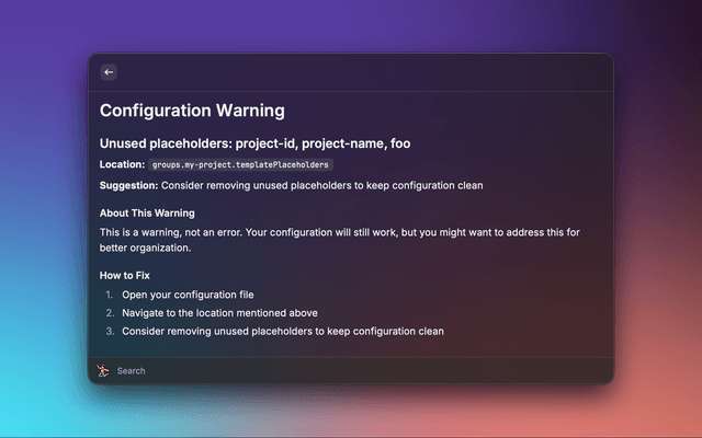 • Nested Placeholder Expansion: Placeholders can reference other placeholders, enabling powerful variable composition.