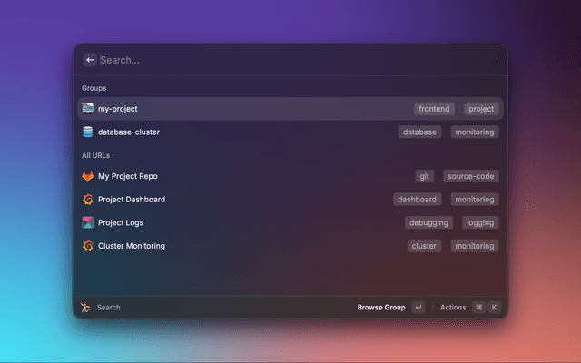 • Smart Search: Instantly find what you need by searching across group names, group titles, URL titles, tags (including tags on group-specific URLs), and even URL domains.