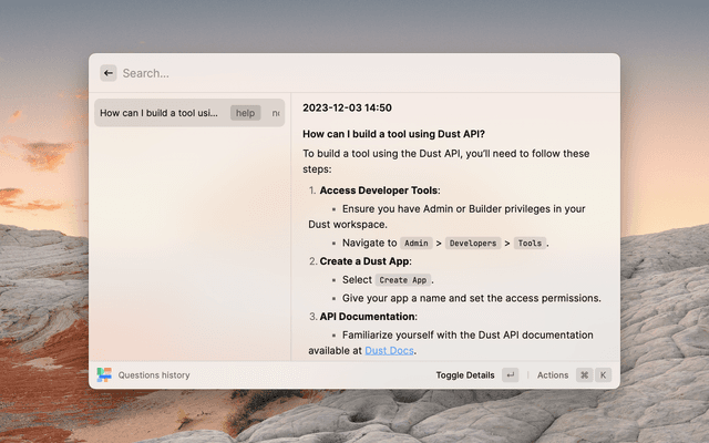 Directly ask something to the Dust, GPT-5 or Claude-4 assistants.