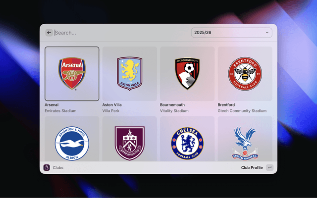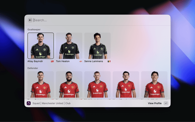 Get instant access to Premier League data right from your Raycast menu. Easily search for teams, players, fixtures, results, standings and awards.