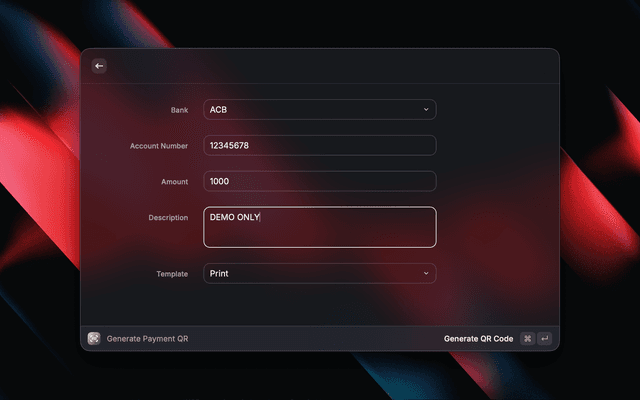 A powerful and intuitive Raycast extension to instantly generate bank transfer QR codes following the VietQR (Napas 24/7) standard.