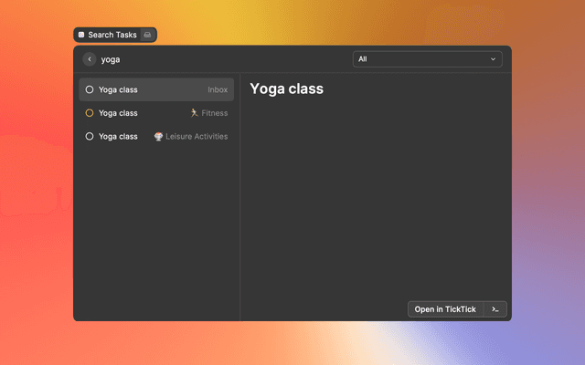 Check and search tasks in TickTick via Raycast