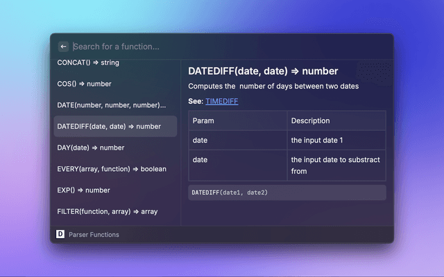 • List documentation of "parser" functions for tooltips (reads in the function list found on GitHub)
