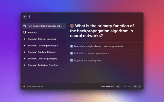 Bite-sized knowledge, on every topic you like, freshly delivered to your Raycast.