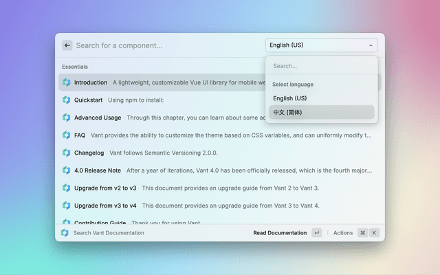 Search Vant documentation