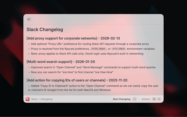 Copy Recent Changes⌘⇧CCopy the latest changelog section to clipboard