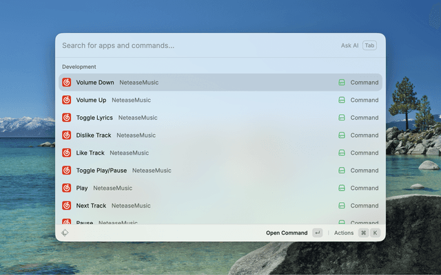 Raycast AIRaycast NotesRaycast FocusClipboard HistoryWindow ManagementSnippetsFile SearchQuicklinksCalculatorCalendarSystemEmoji Picker