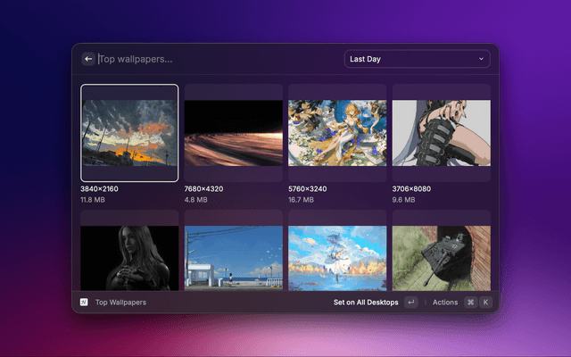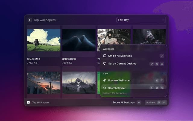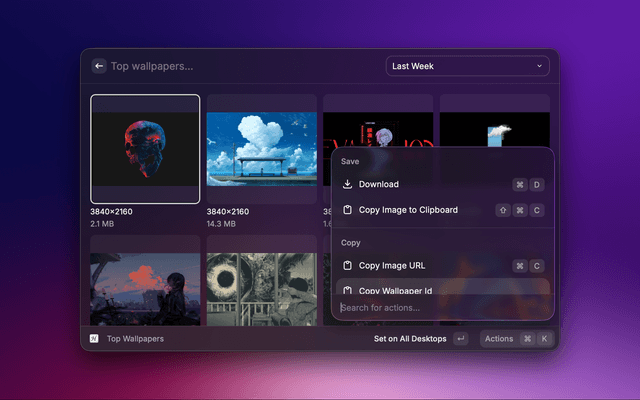 Actions (Cmd+K on any wallpaper)