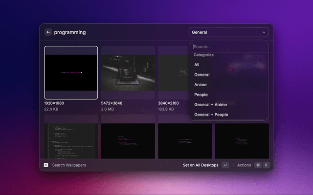 Preview Wallpaper⌘YOpen a detail view with full metadata and color palette