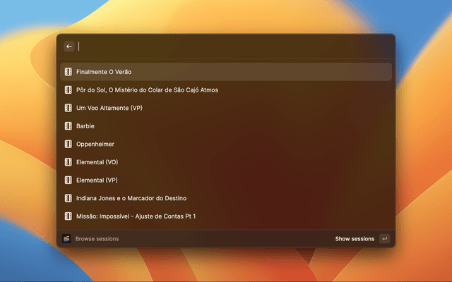 Shows all movies and sessions in display by Cinemas NOS.