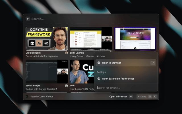 • Access curated Cursor-related YouTube videos directly from the extension.