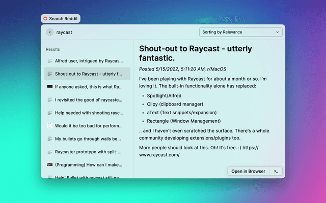 Raycast Reddit Search