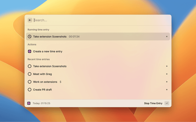 Raycast Toggl Track Extension