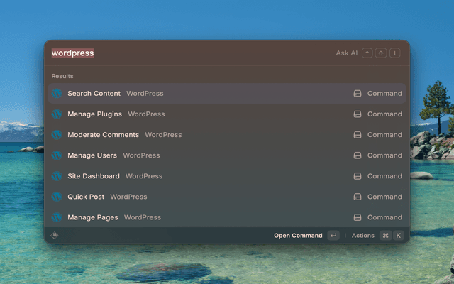 1. Open Raycast and search for any WordPress Manager command