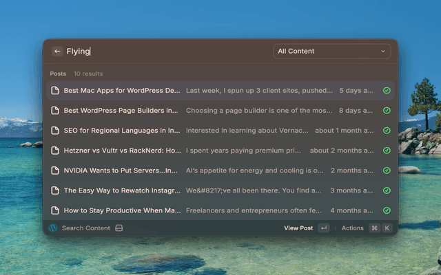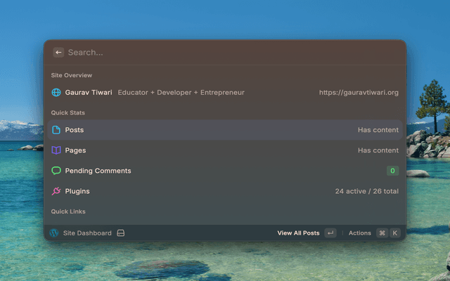 Manage your WordPress site directly from Raycast. Create posts, moderate comments, manage plugins, and more without opening a browser.