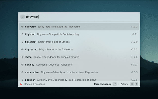 A Raycast extension to search for R packages using METACRAN on r-pkg.org.