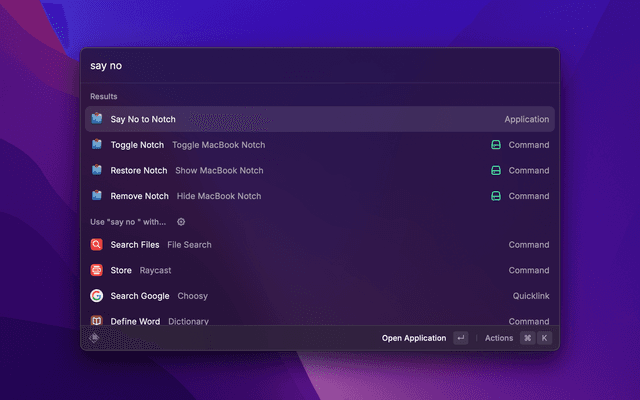 After installation, you can use the commands listed above through Raycast to control the notch visibility on your MacBook.