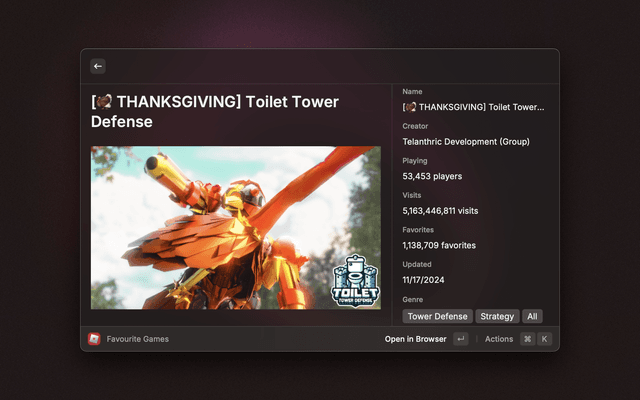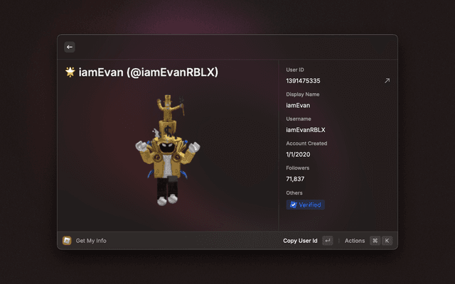 Raycast Extension for finding games, users & more on Roblox