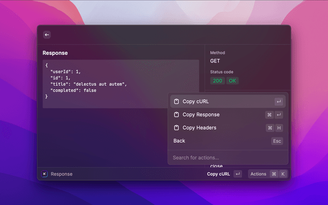 cURL is a keyboard-first HTTP client for Raycast, designed for developers and power users who want to quickly make, inspect, and manage HTTP requests directly from Raycast!