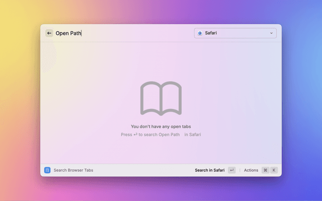 Search and open tabs in Chrome, Safari, Edge, Arc, Brave, Vivaldi, Opera and Orion, etc.