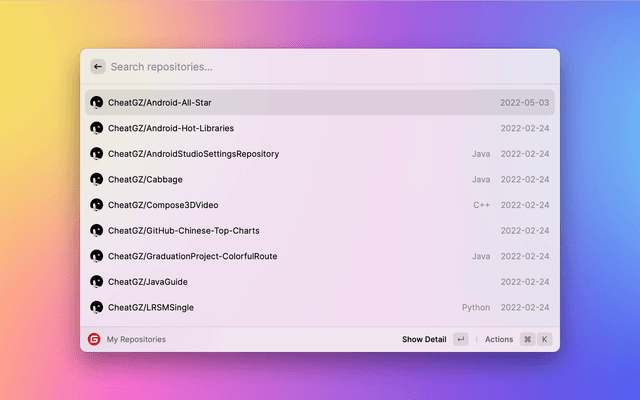 Work with issues, pull requests, manage workflows, search repositories and stay on top of notifications