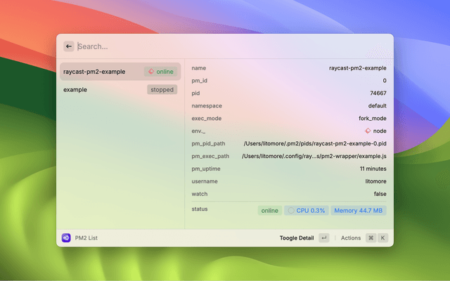 This extensions follows Raycast Cross-Extension Conventions. You can send Node.js application to PM2 through crossLaunchCommand.