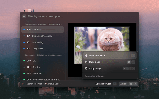 Quickly look up HTTP.cat πŸˆβ€β¬›πŸˆ status codes with funny cats