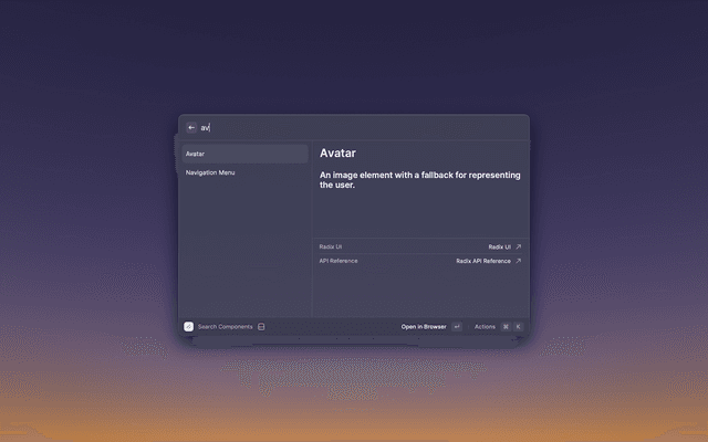 Raycast extension to Browse shadcn/ui documentation, components and examples