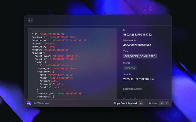 • View event details - easily copy their payload