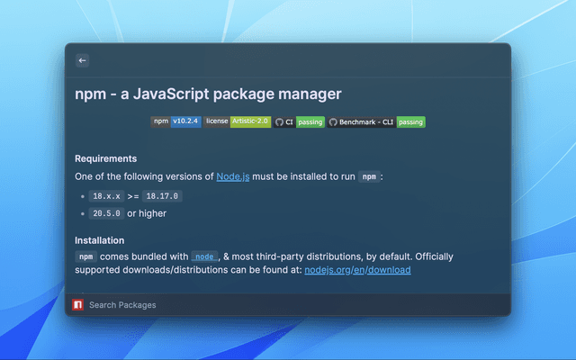 • view the package's README in a Raycast detail view