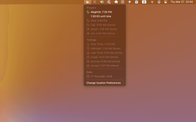 • View the menu item for all prayer times