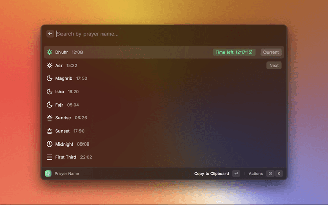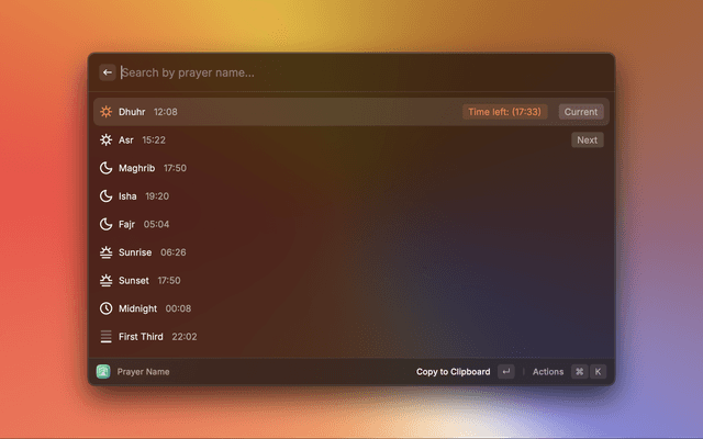 This extension helps you to search prayer time for the user location