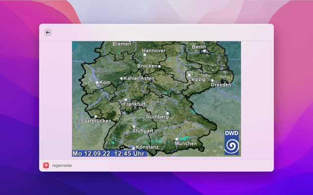 Shows the current rain radar by Deutscher Wetter Dienst