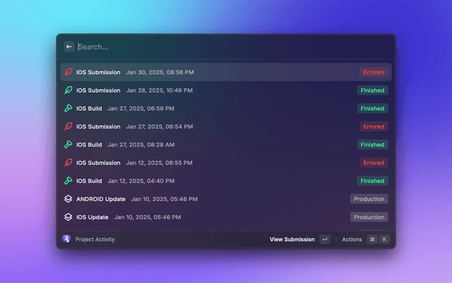 • Manage Projects: View and manage your Expo projects, including builds, submissions, and updates.