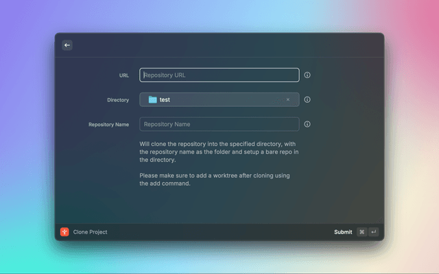 • Clone Projects: Easily clone repositories as bare repos, ready for worktree management