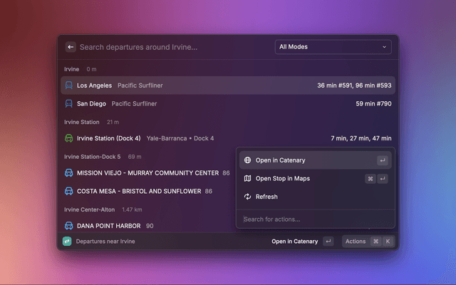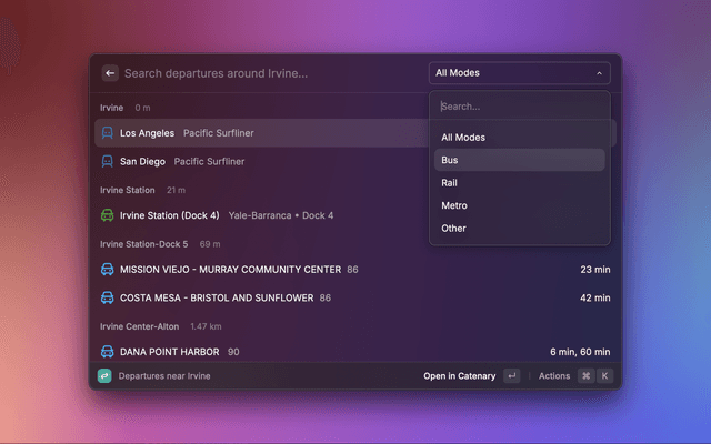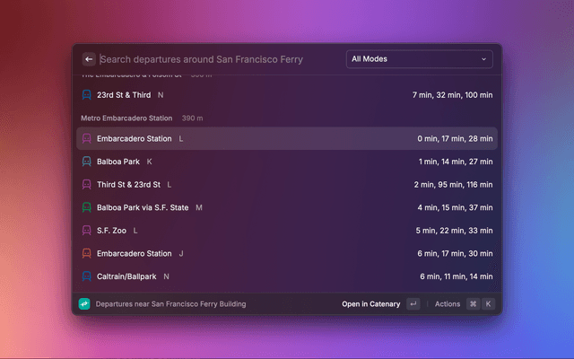 View real-time transit departures for stops near you using Catenary.