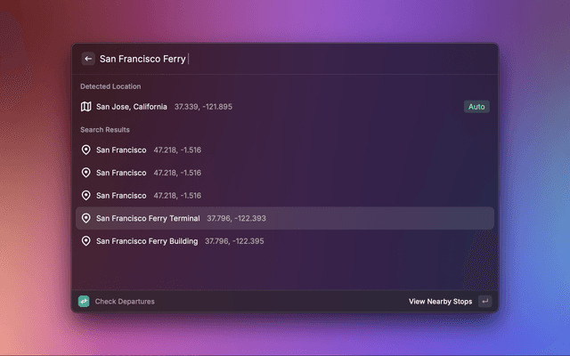 • Nearby Stops: Automatically detect your location or search for stops by name.