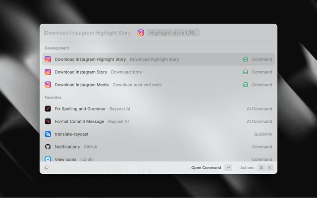Introducing a user-friendly Raycast extension designed specifically for downloading media from Instagram posts and reels. With this tool, you can effortlessly download and save media directly to your local machine using just the post or reel URL, eliminating unnecessary complications.