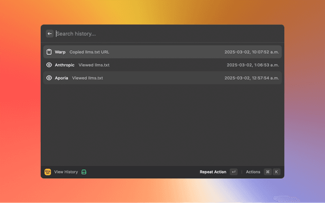 - 📜 History Tracking: Keep track of your previously viewed and copied llms.txt files