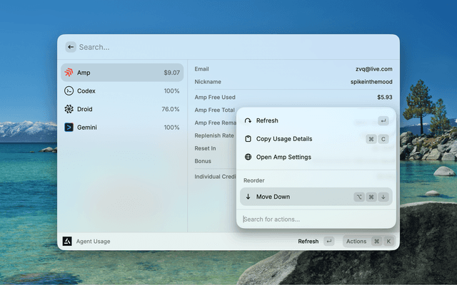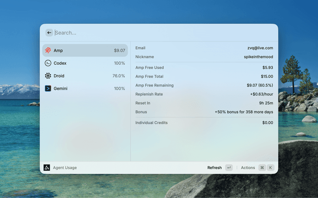 Monitor AI coding agent usage across Amp, Codex, Droid, Gemini, Kimi, Antigravity, and z.ai
