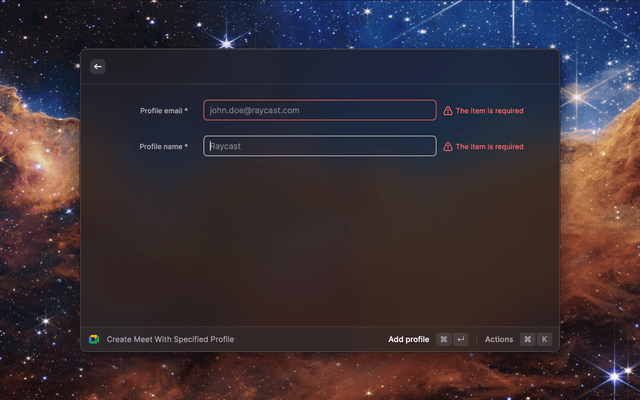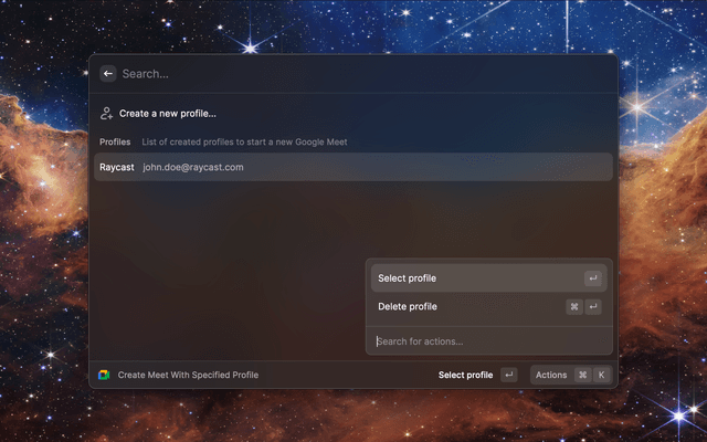 Start a Google Meet directly from Raycast