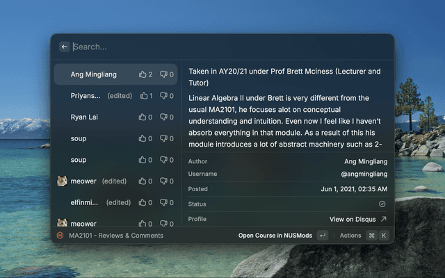 • The extension will now show a "View Reviews & Comments" option (⌘R) when viewing course details