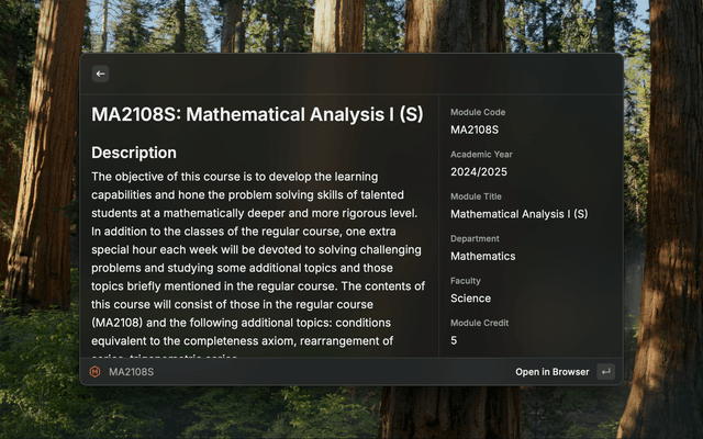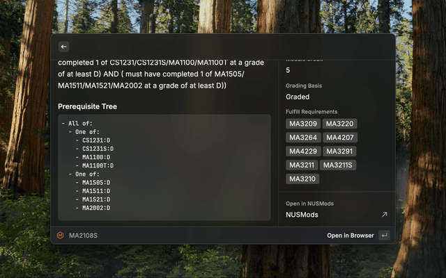 A Raycast extension to search and explore National University of Singapore (NUS) courses powered by NUSMods API.