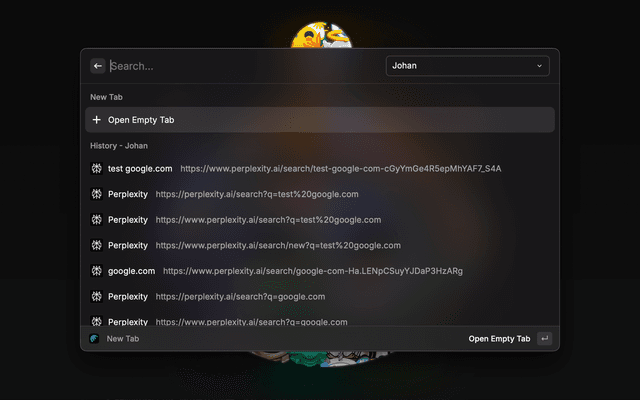 • New Tab: Create new tabs with automatic Perplexity search integration