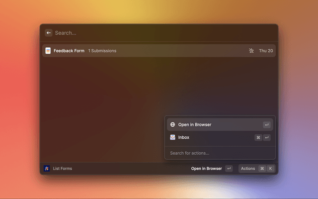 This is a Raycast extension for Jotform. With this extension you can view Forms and their Submissions.