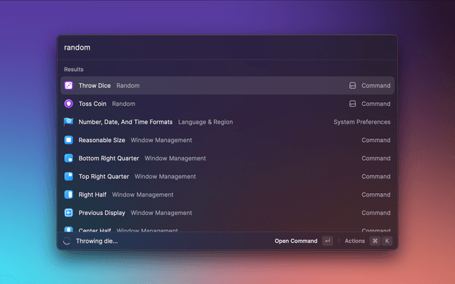 • Throw custom (impossible) dice (to use this feature, enable the Command from Preferences)
